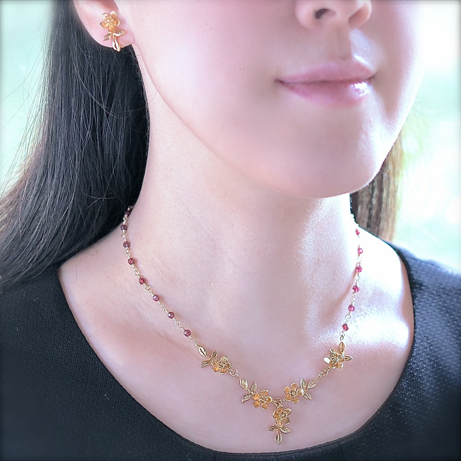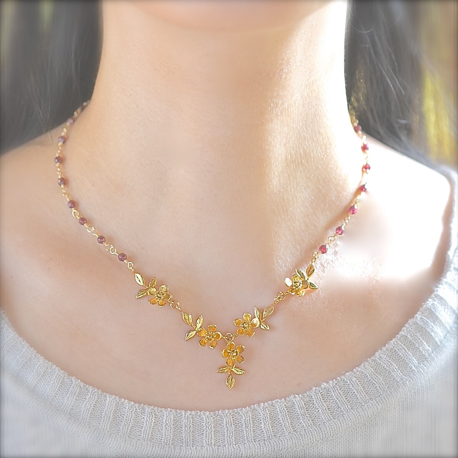 material: silver925-24KGP(ニッケルフリー)、ガーネット(チェーンワイヤー部は合金使用)